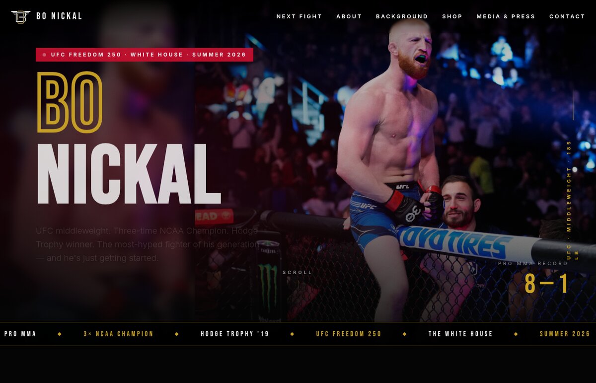 Bo Nickal is not just one of the best wrestlers this country has ever produced. He’s a UFC middleweight. Three-time NCAA Champion. Hodge Trophy winner. And his website is built like a pro fight promoter’s press kit.